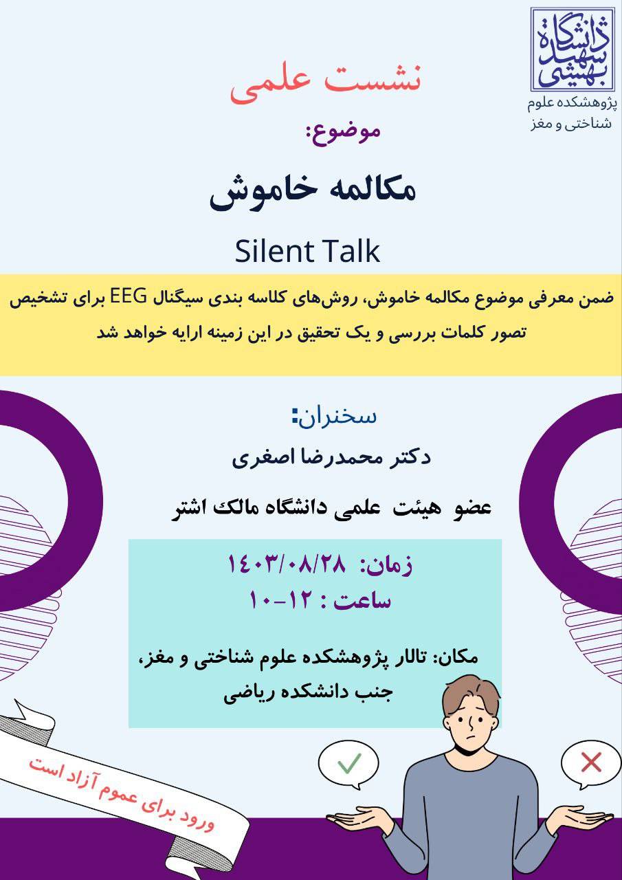 ضمن معرفی موضوع مکالمه خاموش، روشهای کلاسه بندی سیگنال EEG برای تشخیص تصور کلمات بررسی و یک تحقیق در این زمینه ارایه خواهد شد.