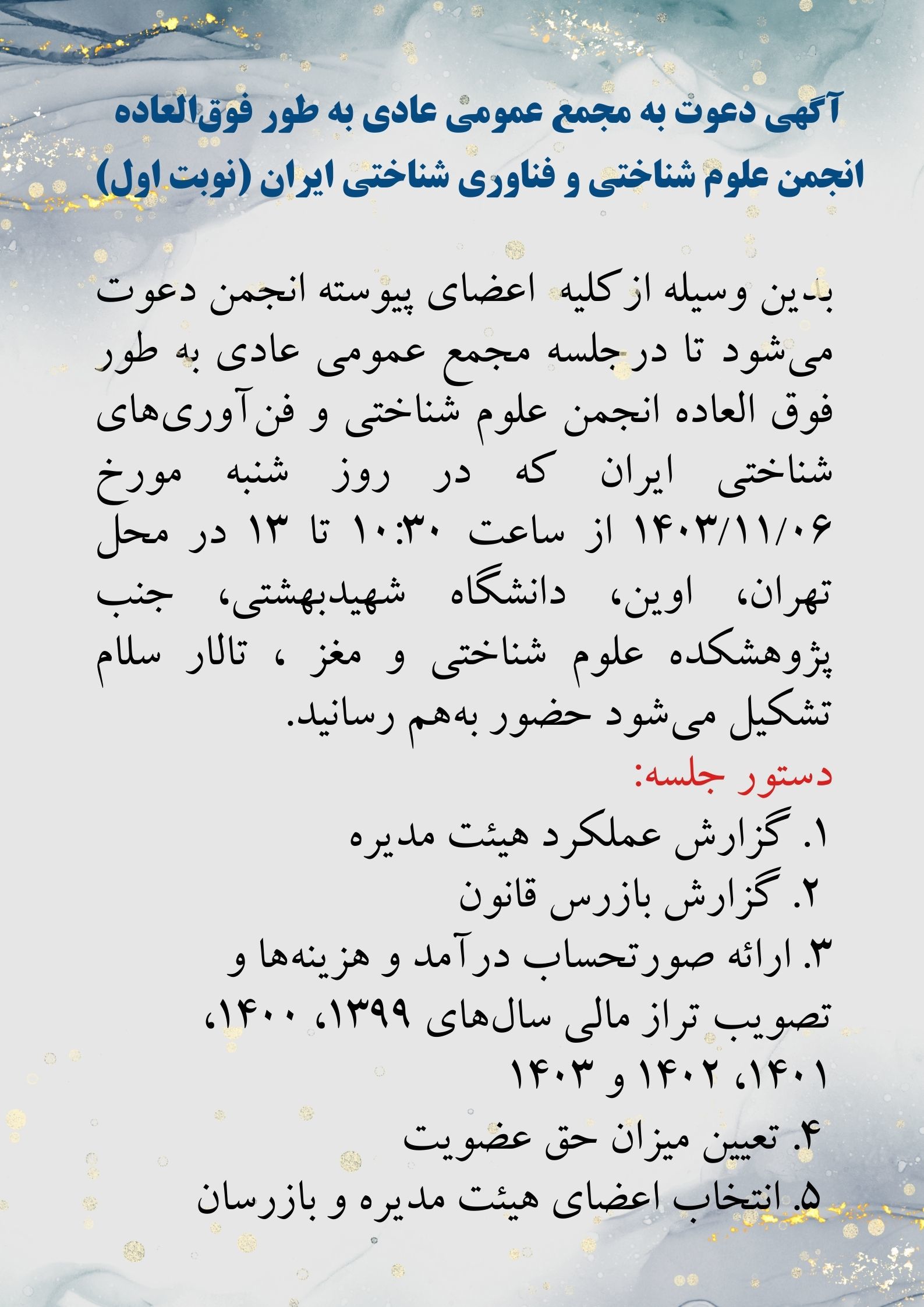 دعوت به مجمع عمومی عادی به طور فوقالعاده انجمن علوم شناختی و فناوری شناختی ایران
