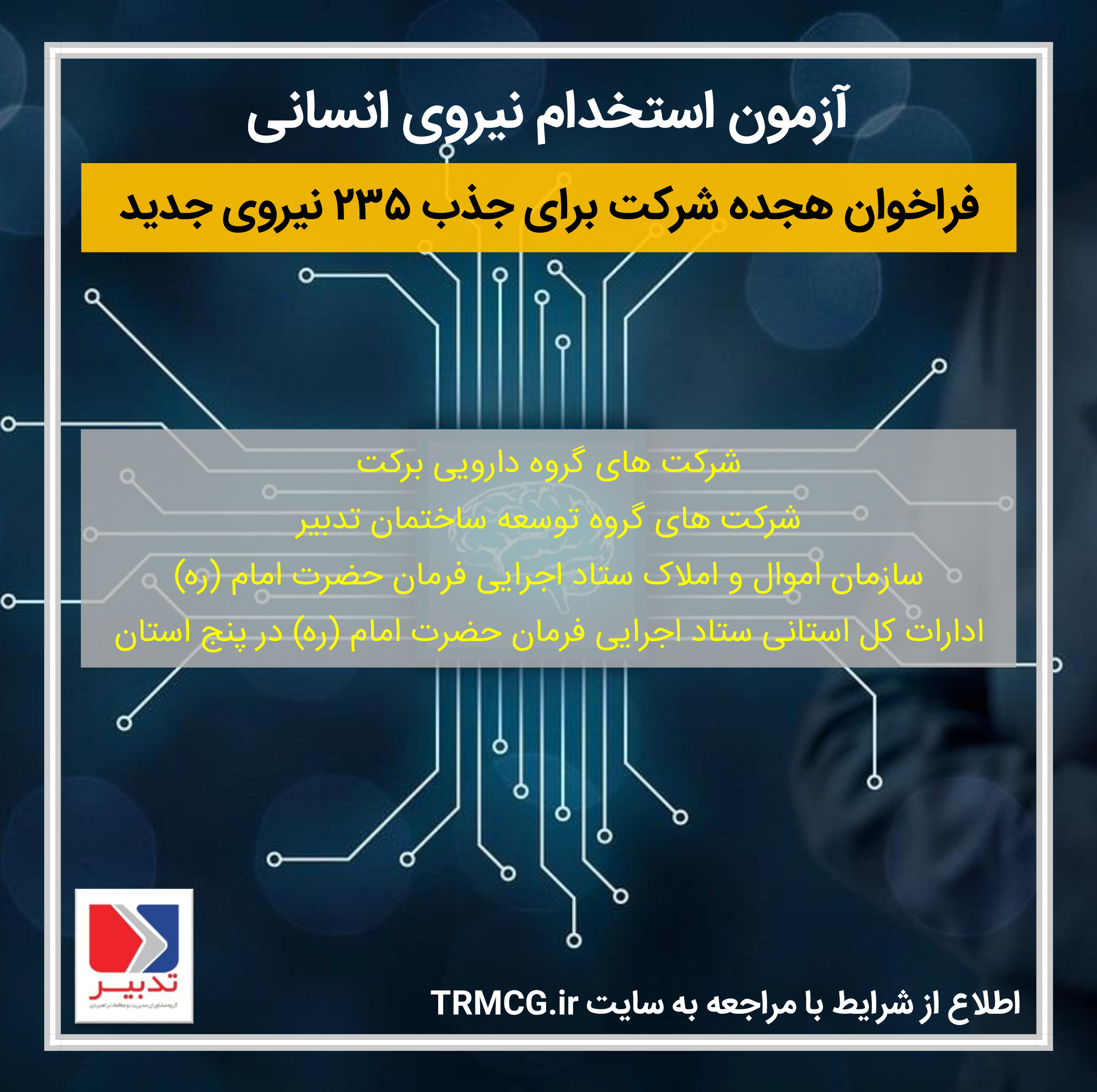 فراخوان هجده شرکت برای جذب 235 نیروی جدید شرکتهای ستاد اجرایی فرمان حضرت امام