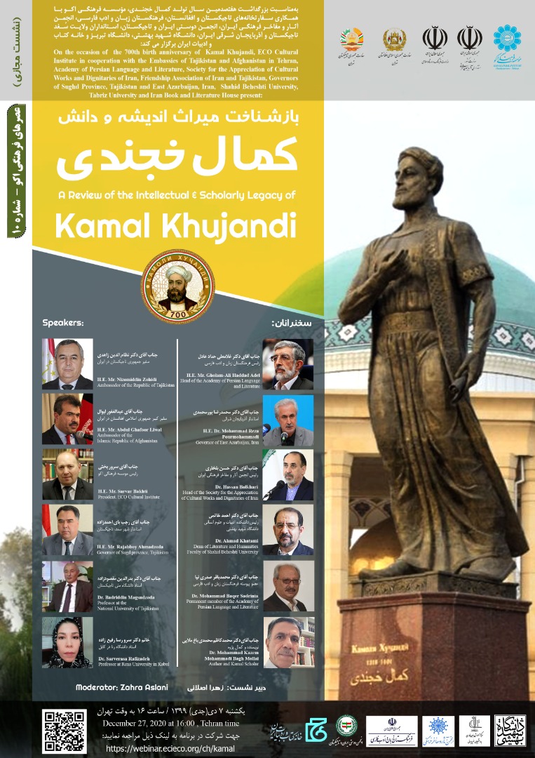 برگزاری نشست بازشناخت میراث اندیشه و دانش کمال خجندی 9113 بازدید print share 07 دی به مناسبت بزرگداشت هفتصدمين سال تولد کمال خجندی، معروف به شیخ کمال از عارفان و شاعران پارسیگوی قرن هشتم هجری،...